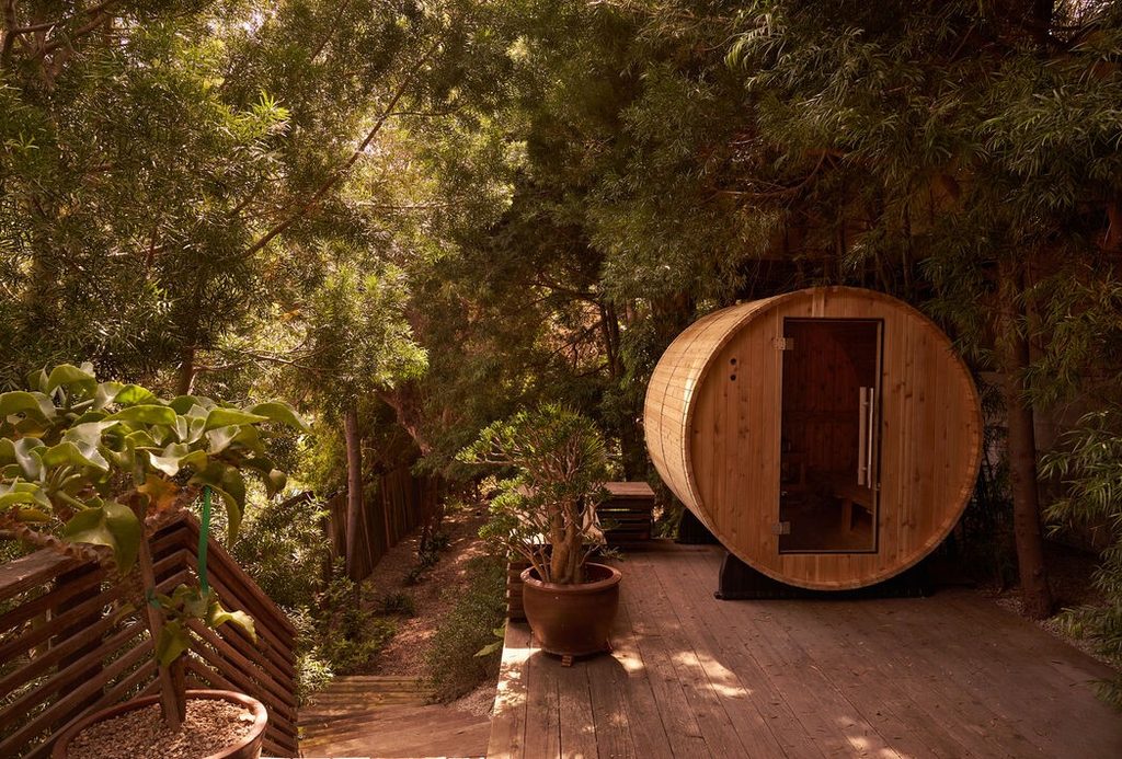 Outdoor spaces feature a pool, spa, dining areas, and a particularly secluded upper terrace with a Zen garden and sauna. Not only all of this and just minutes from the best of Hollywood.