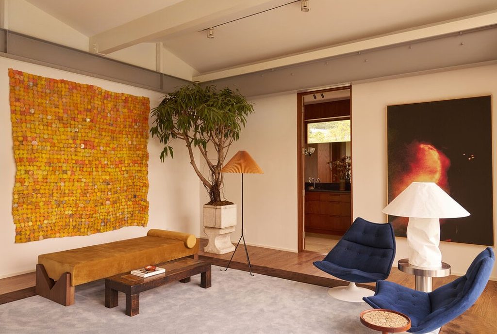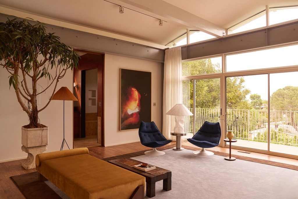 Nichols Colony in the Hollywood Hills is one of our favorite mid-century modern enclaves. And this home on Chandelle originally designed by Whitney R Smith of Smith and Williams was one of the original gems. It has been re-imagined by studio Ome Dezin. And, that roofline!