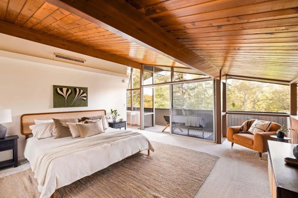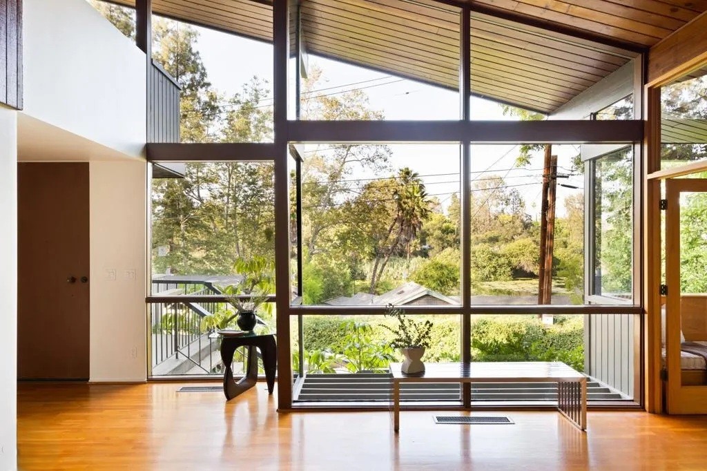 Tucked away in Pasadena’s most coveted and exclusive neighborhood, this exceptional residence—designed by renowned architect John L. Pugsley—offers 4 bedrooms and 4.5 bathrooms within the private gates of the prestigious Brookmere Enclave in San Rafael. Set against the serene backdrop of Johnston Lake, this post-and-beam architectural gem boasts an open, light-filled floor plan with soaring vaulted ceilings and walls of glass that seamlessly connect the interior to its natural surroundings.